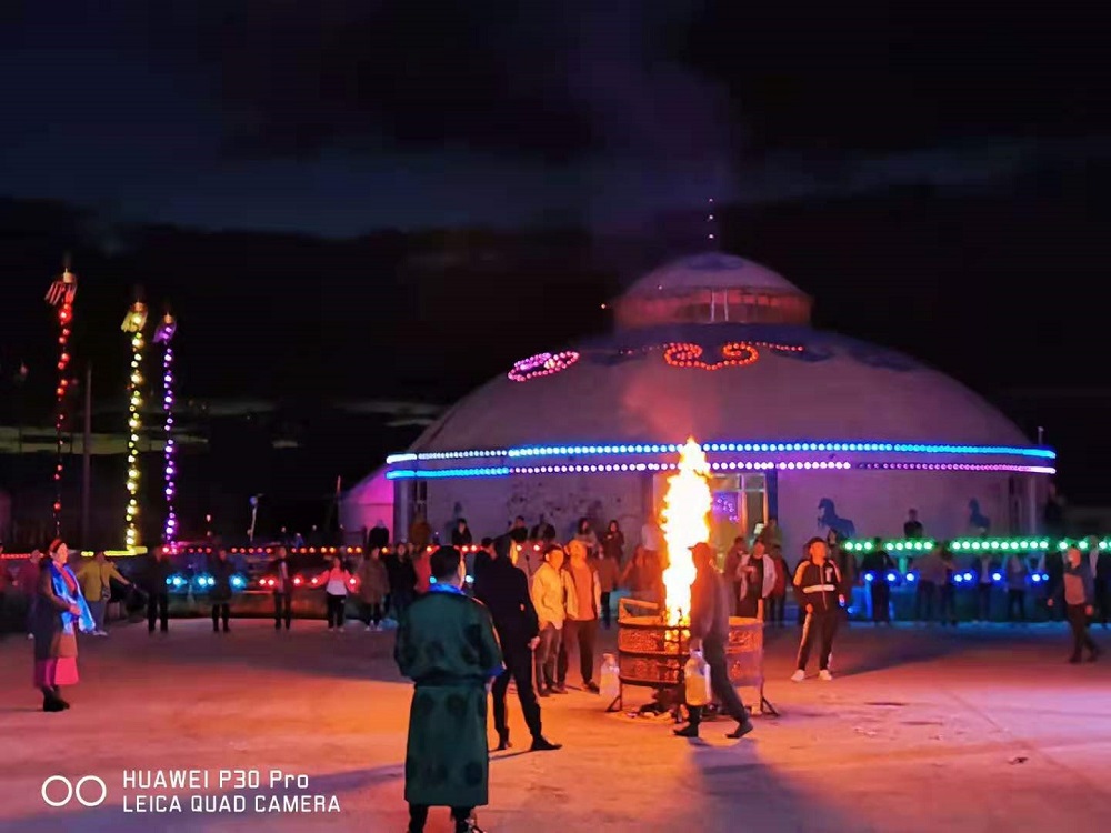 民俗篝火晚會,歌舞表演體驗,一望無際的草原、布滿天空的星辰、吃草的牛羊,跳躍的篝火......